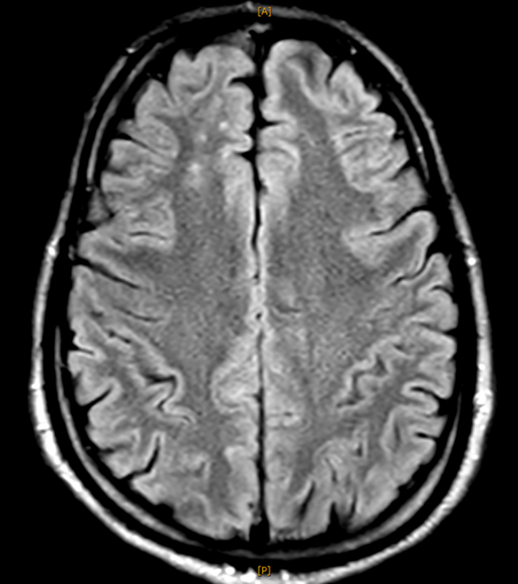 以下、今回撮られたMRI画像です。いずれも 右前頭葉に脳挫傷性の変化 が認められます。